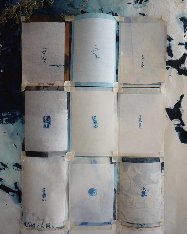 二十四節気を陶印であらわし、青い墨(藍とラピスラズリ)で季節の景色を表現しました。 数字のない暦として、太陽のめぐりを感じながら言葉で季節をとらえる半永久的カレンダー。 フレームに入れて掛け替えるための24枚セットでの販売です。 ____ 白連半紙、各種手漉和紙(大分県産)、墨、金泥 size 19.5×13.5cm(1枚) ※背景の紙や、フレームは販売していません。