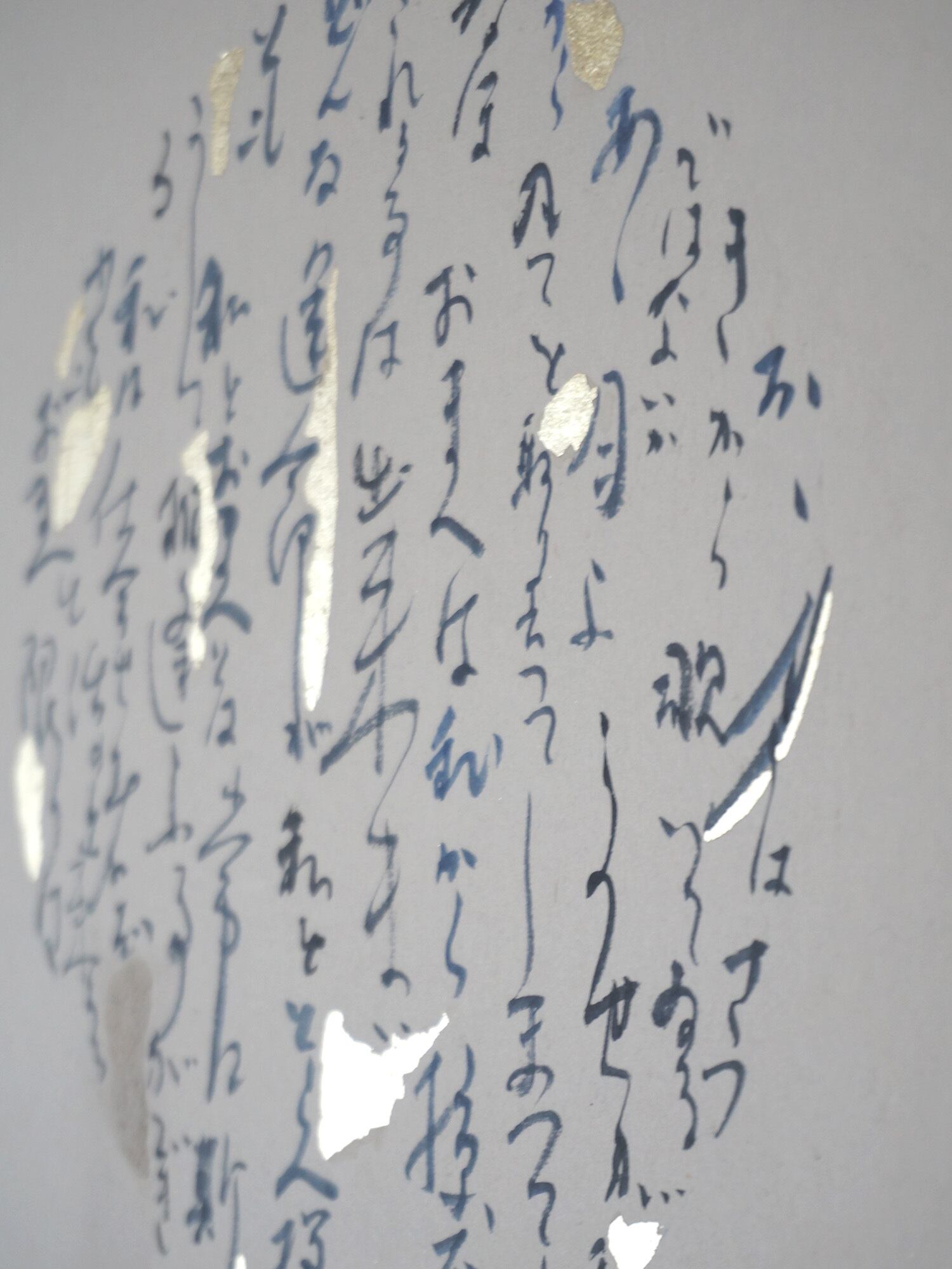 material/ 画仙紙、墨、金箔、温泉、胡粉
