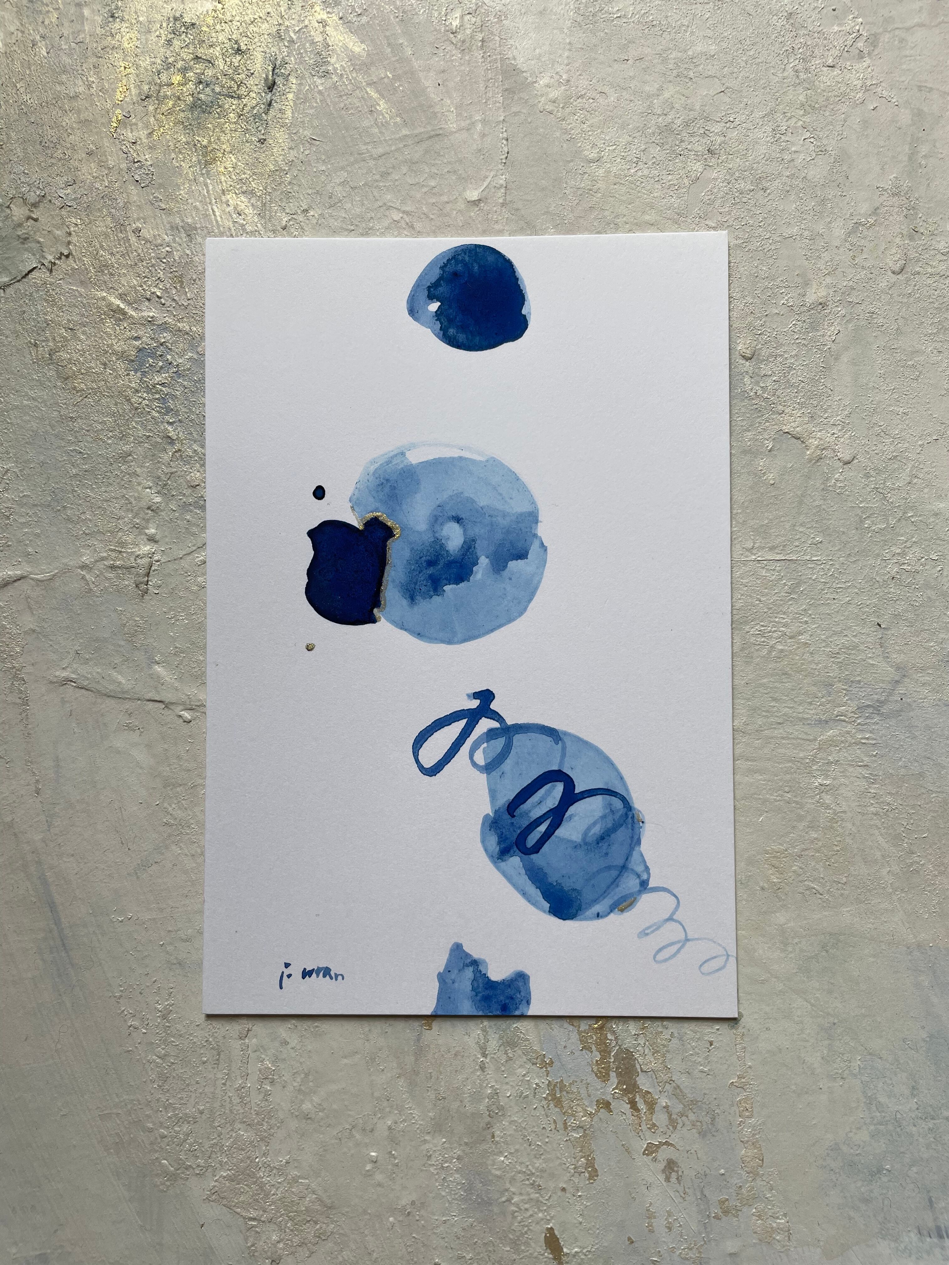 (素材/洋紙はがきに墨と金泥,墨は藍、ラピスラズリ)