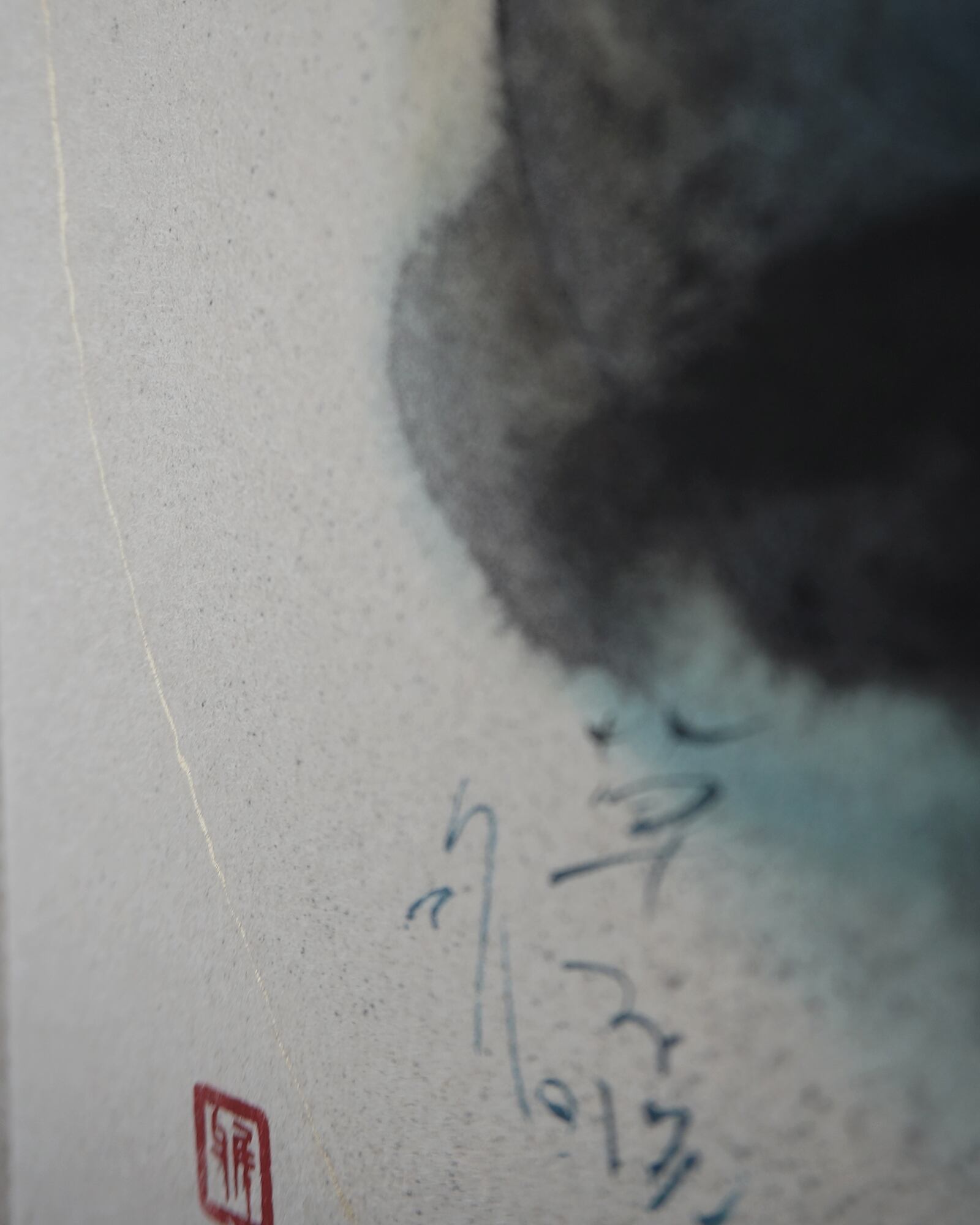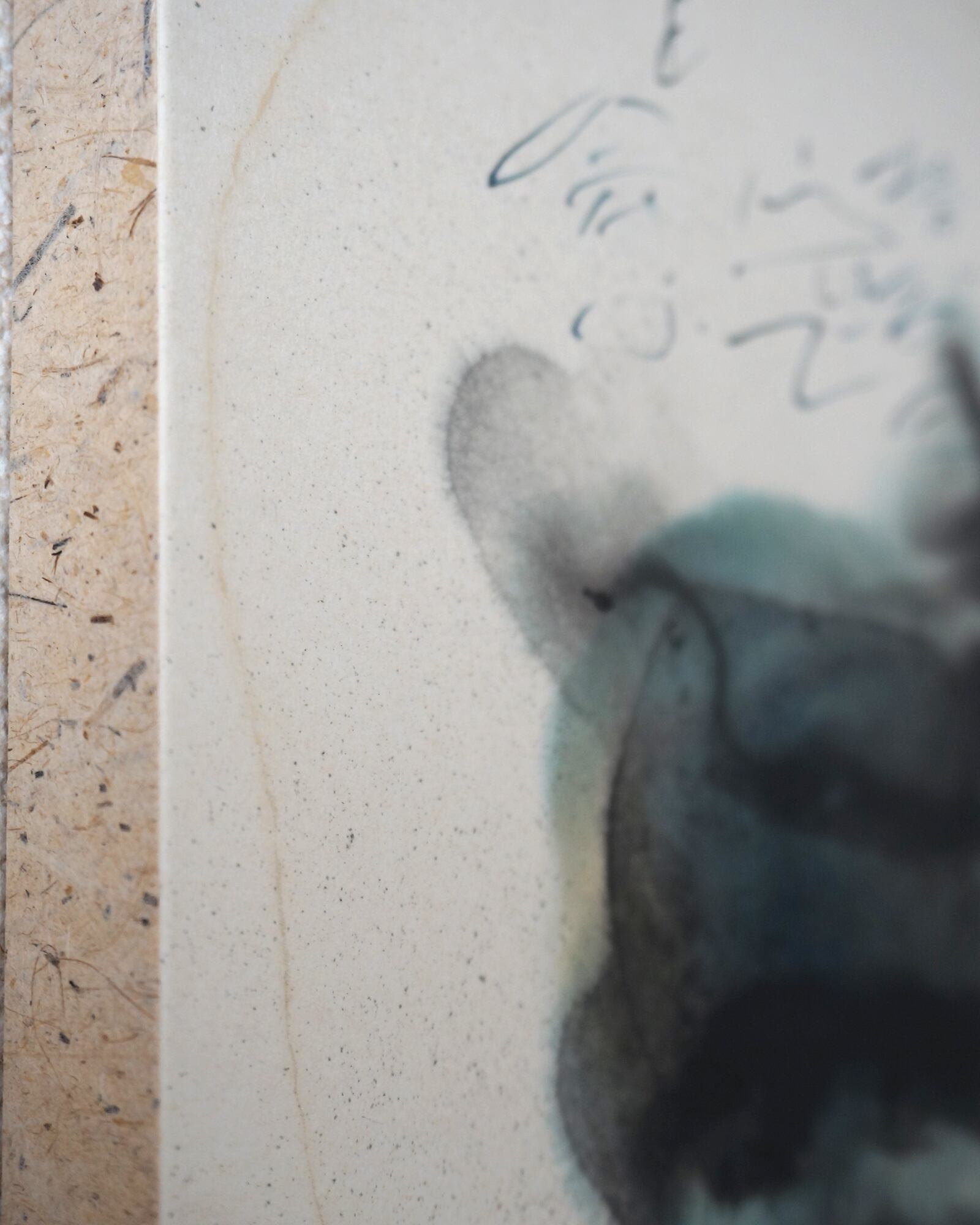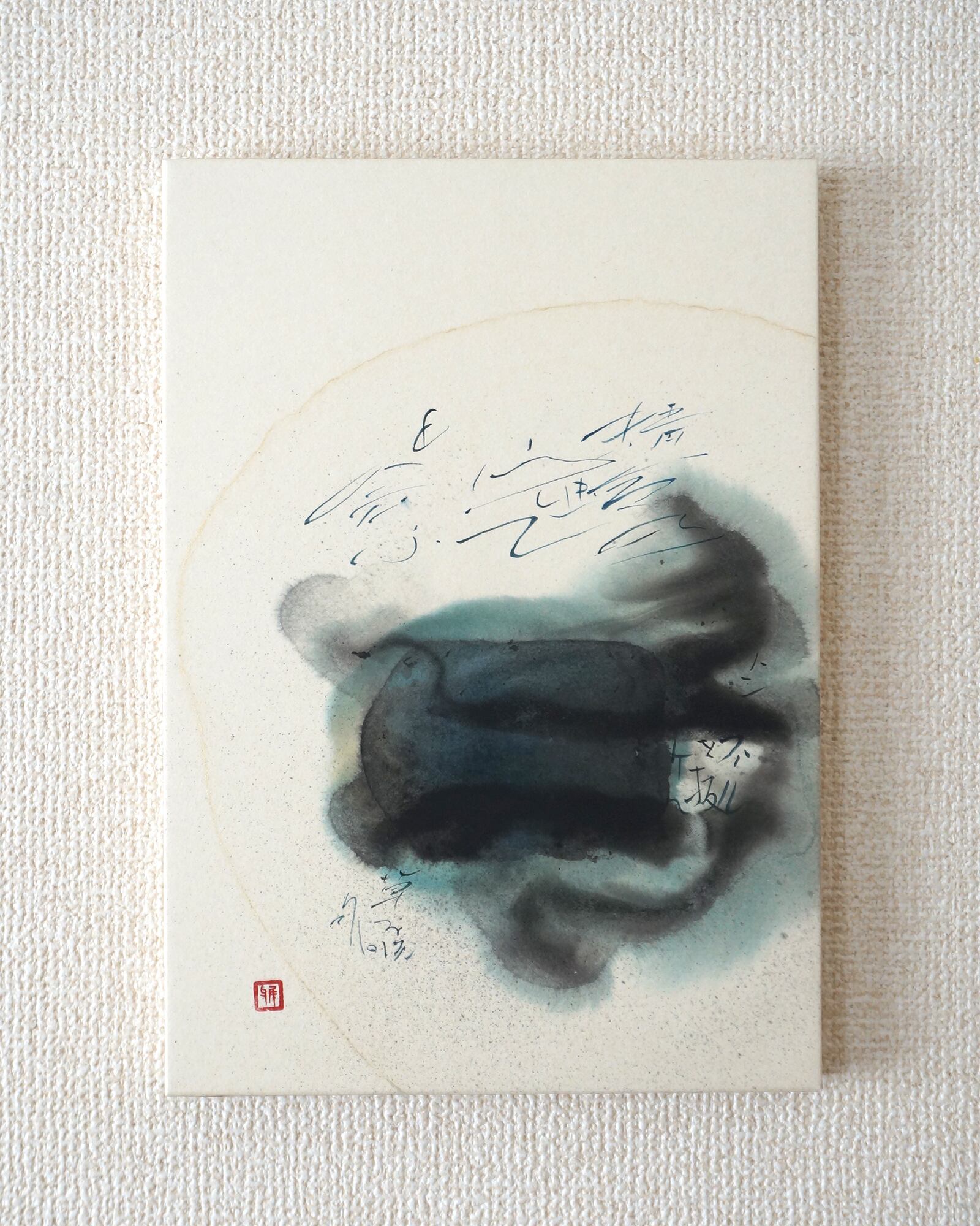 2023年秋開催の展示〈書と俳句〉にて発表。俳人 草子洗とのコラボレーション作品。秋の句。 画仙紙、墨 size 299×210㎜ A4 パネル仕上げ