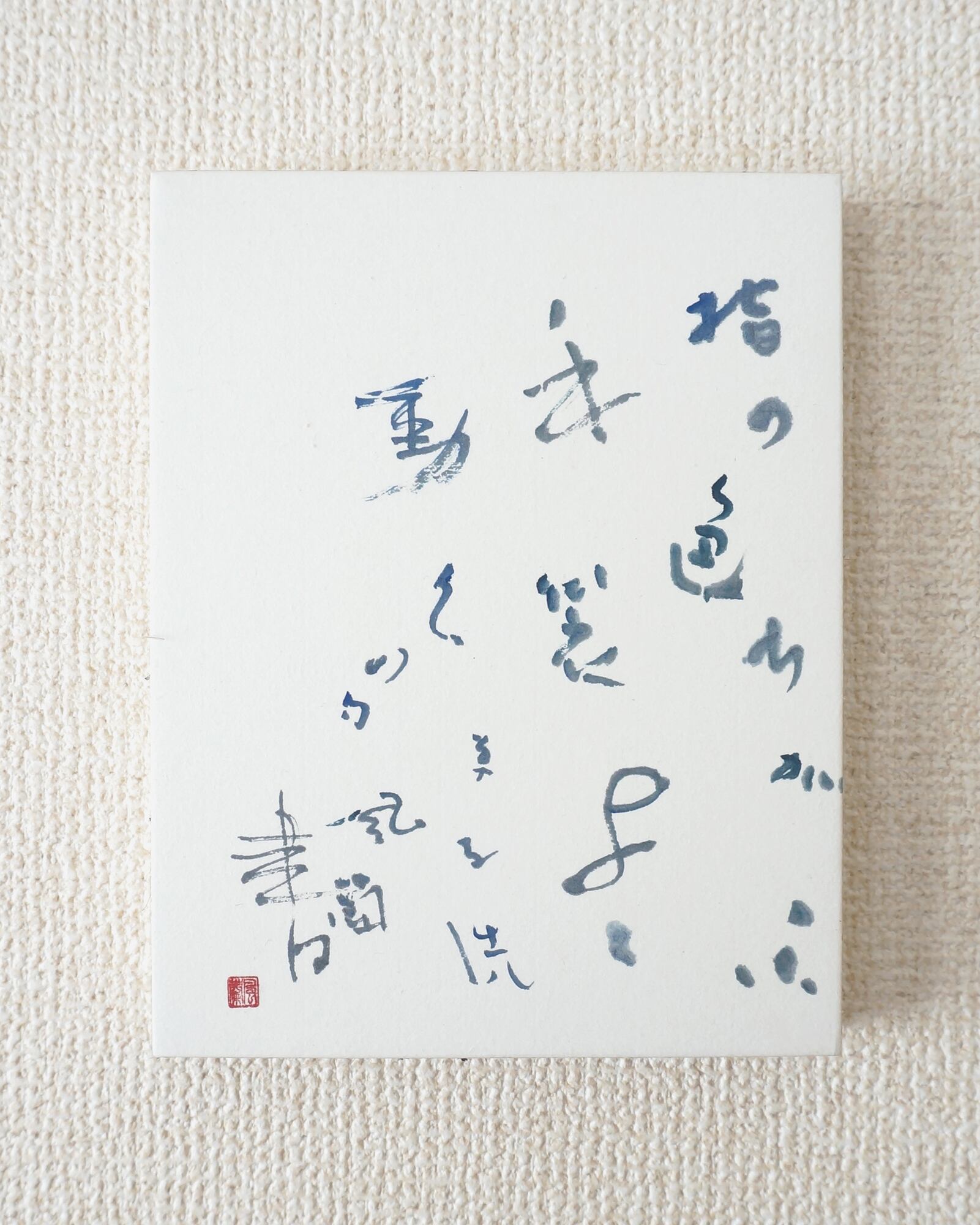 2023年秋開催の展示〈書と俳句〉にて発表。俳人 草子洗とのコラボレーション作品。冬の句。 画仙紙、墨 size 180×140㎜ F0 パネル仕上げ