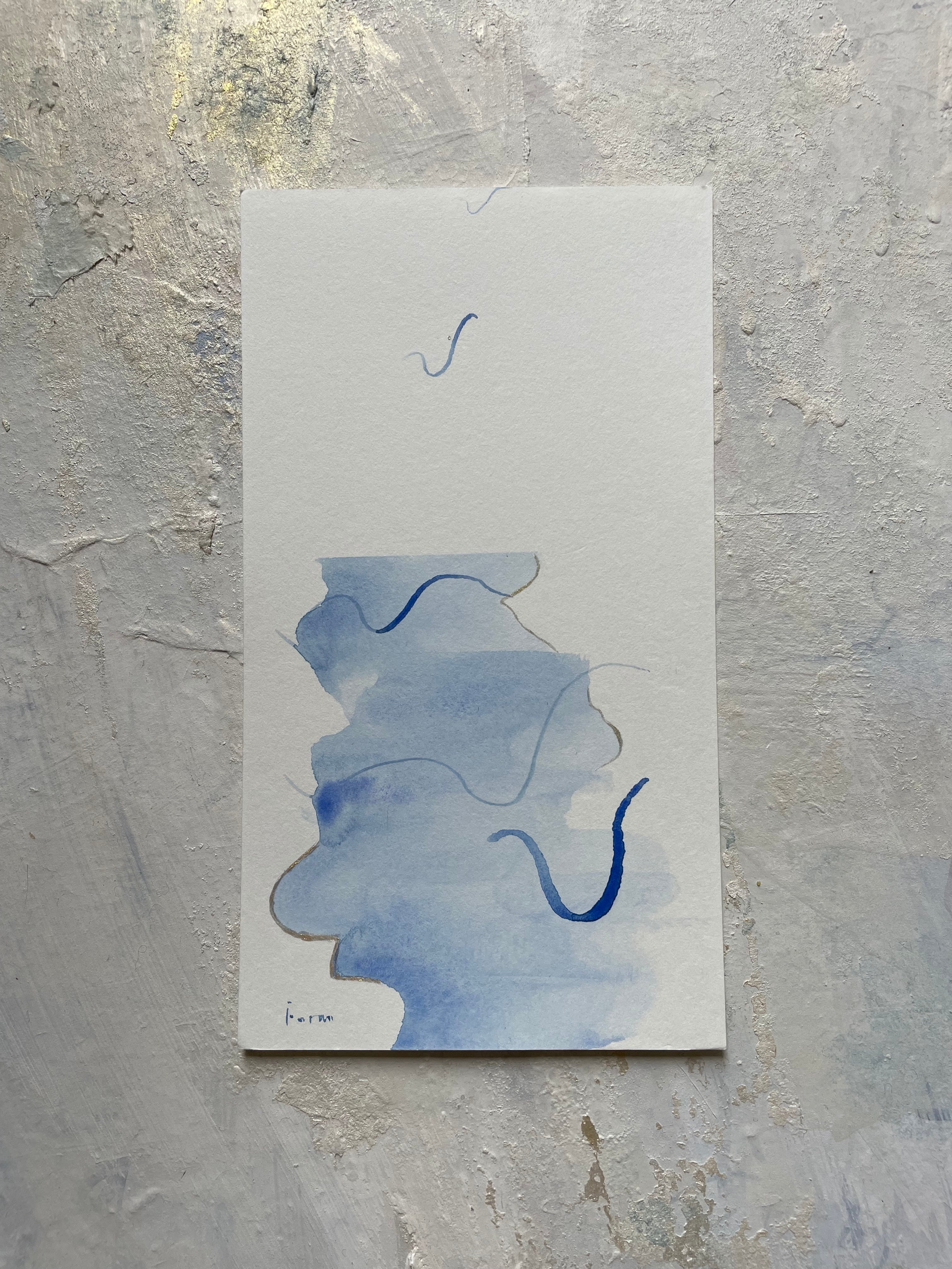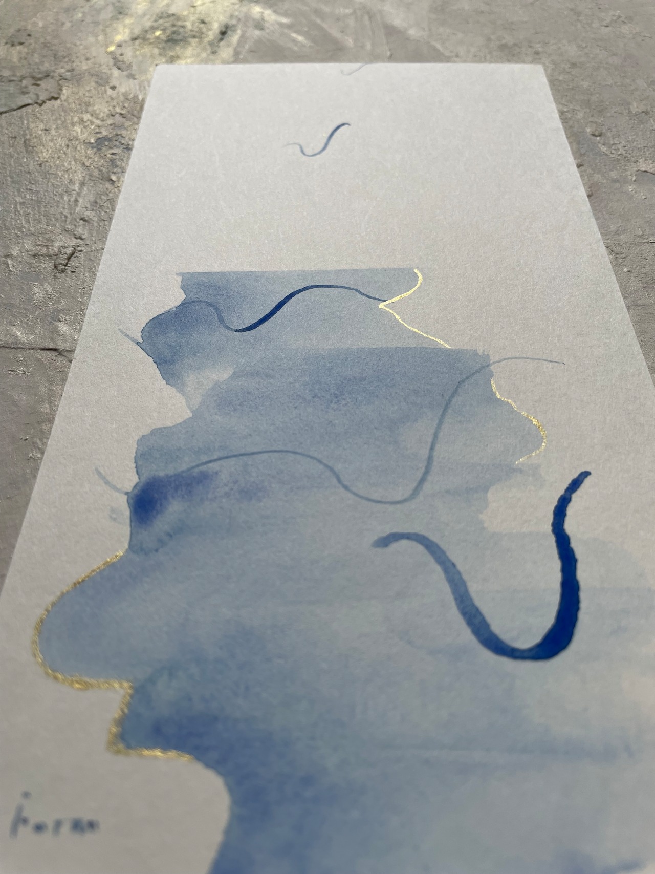 素材/洋紙はがきに墨と金泥,墨は藍、ラピスラズリ